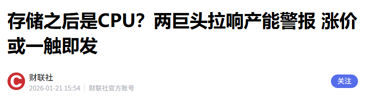 CPU涨价对国产厂商(海光、澜起等)是利好,能直接提升自家CPU产品利润空间预期,外国巨头涨价,还可能加速客户转用国产CPU。