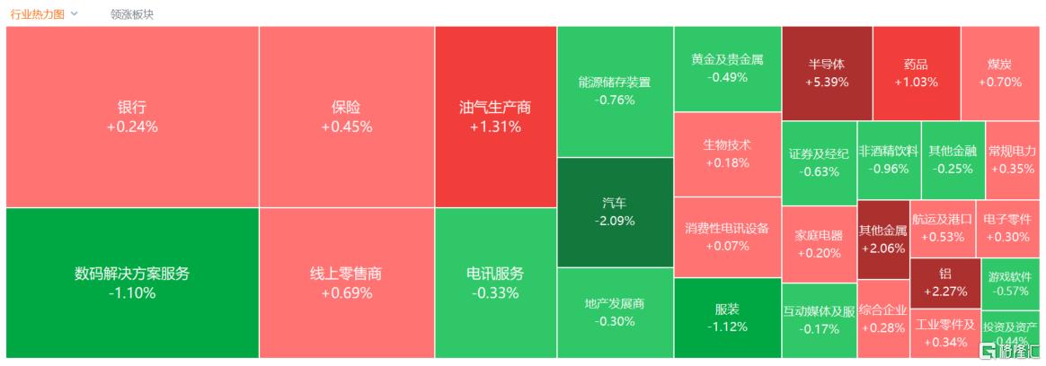 盘面上,作为市场风向标的大型科技股部分拉升转涨,其中阿里巴巴涨1%,百度早盘曾直线拉升涨至超2%收涨0.75%;DeepSeekV4引爆半导体板块,华虹半导体大涨超15%,中芯国际大涨10%;机器人概念股、石油股、脑机接口概念股、生物医药股多数上涨。另一方面,据报内地收紧低息车贷多车企暂至4月底截止,汽车股跌势不止,新能源车跌幅较为明显,影视股、濠赌股、茶饮料股多数低迷。