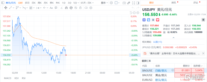 不过,目前日元已经小幅走强,截至发稿,日元兑美元汇率上涨0.44%,至156.55。