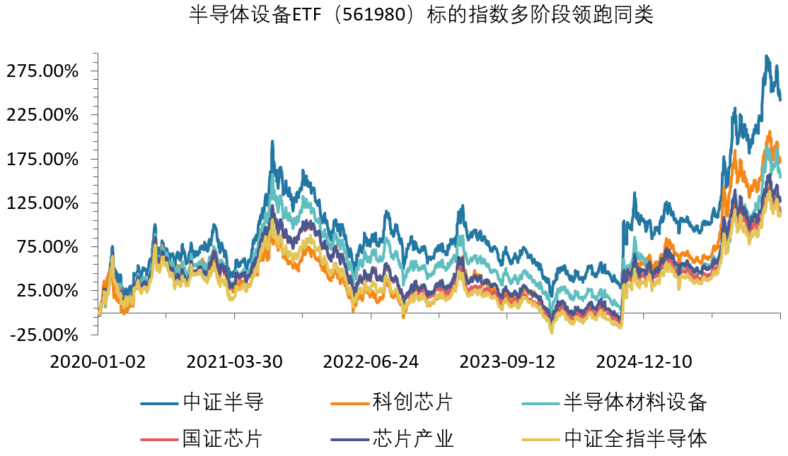 数据显示,截至3月9日,中证半导2020年、2025年至今区间累计涨幅分别为255%、74%,大幅领先科创芯片、半导体材料设备等主流可比半导体主题指数,凸显出更强的指数弹性和进攻性,或在新一轮半导体上行周期中更具反弹锐度。