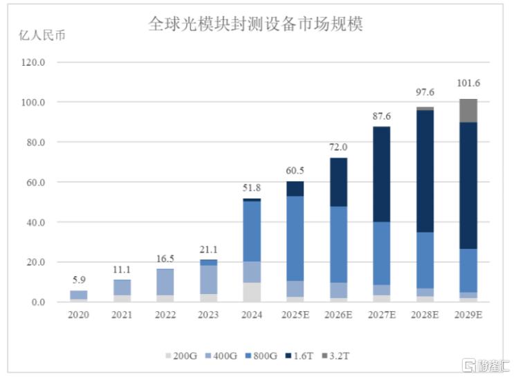 受益于AI算力需求爆发,全球高速率光模块封测设备市场呈现跨越式增长。