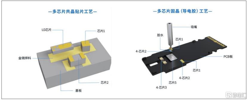 其中,贴片工艺主要是指在光模块封测过程中,将光电器件如激光器驱动芯片、激光器芯片、探测器芯片等各类光电芯片精确地固定在载体上(如PCB、陶瓷基板等)。
