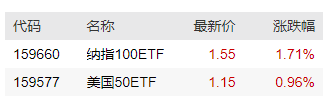 8月20日,受美股大型科技股提振,聚焦美股核心龙头资产的美国50ETF(159577)涨0.96 %,“低费率”的纳指100ETF(159660)涨近2%。