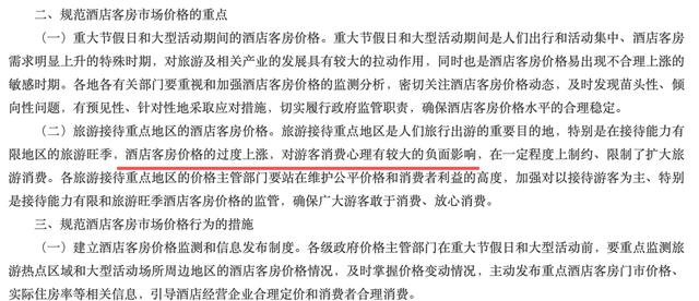 国家发改委多年前发布的《关于规范酒店客房市场价格的意见》中就明确提到,在接待能力有限地区的旅游旺季,酒店客房价格的过度上涨,对游客消费心理有较大的负面影响,在一定程度上制约、限制了扩大旅游消费。
