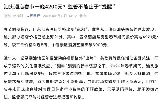 对于暴涨几倍的酒店,汕头当地其实也看不下去了。