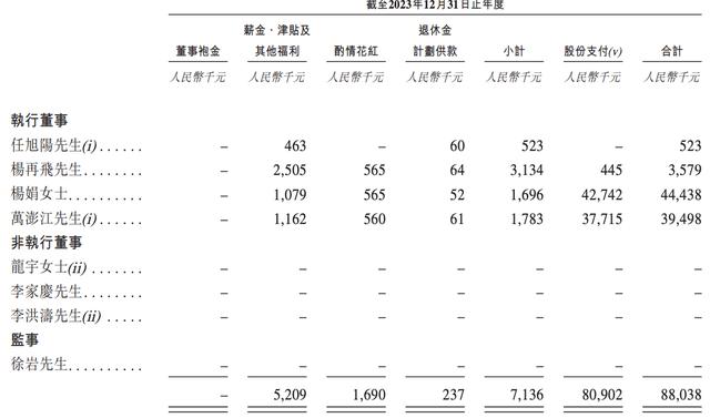 特别说明的是,2023年,海致科技对杨娟、万澎江的股份支付金额分别约4274.2万元、3771.5万元,对杨再飞的股份支付约为44.5万元,合计高达8090万元。叠加后,杨娟、万澎江2023年的薪酬总计分别约为4443.8万元、3949.8万元。