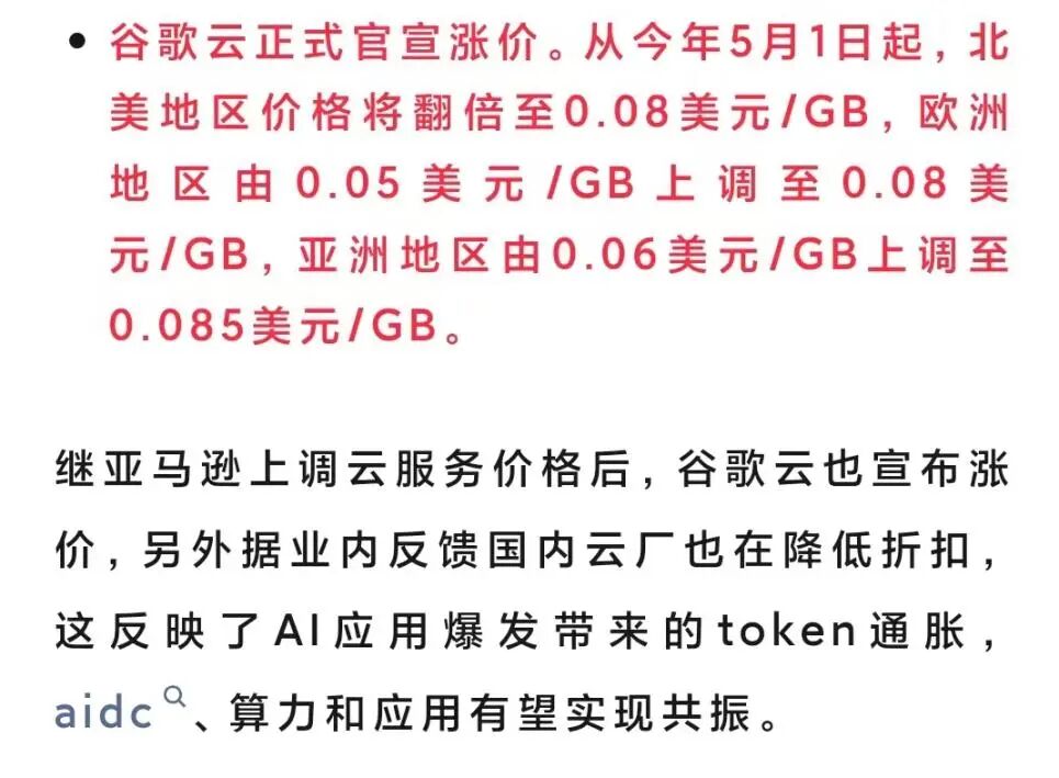 另外,我在1月28号的文章提醒过大家,谷歌云正式官宣涨价,而国内云厂也在降低折扣,这反映了AI应用爆发带来的token通胀,aidc、算力和应用有望共振。如果说谷歌云涨价对国产算力提振不够明显,后面网宿、优刻得先后宣布涨价,智谱更是上调ap价格,直接打通了整个产业链。