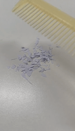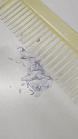 最后,将摩擦后的梳子靠近纸屑,观察是否还能吸附纸屑。