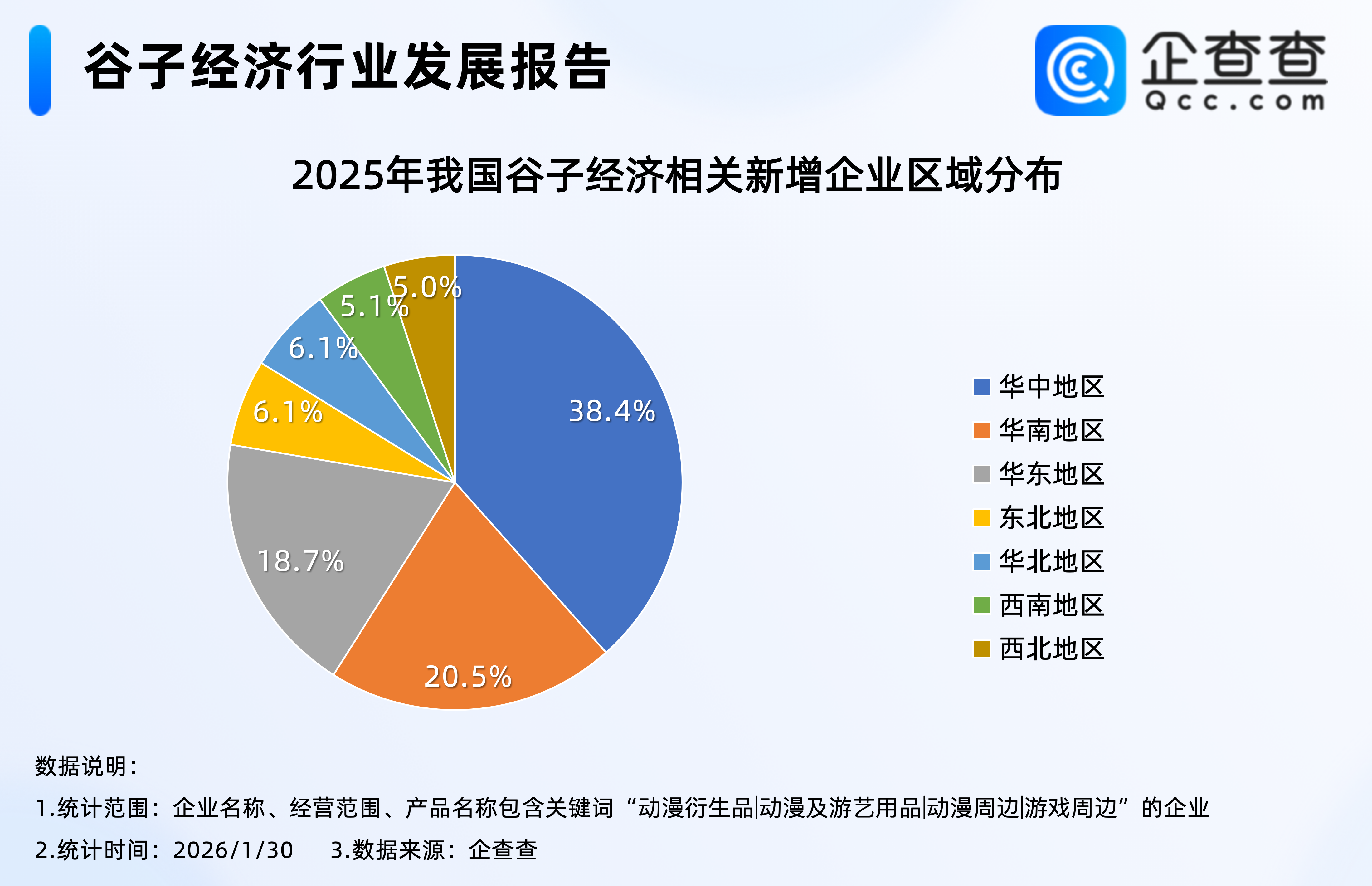 企查查数据显示,2025年新注册的308万家谷子经济相关企业中,位于华中地区的相关企业最多,占比38.4%,其次是华南地区,占比20.5%,西南、西北地区相对较少,分占5.1%、5.0%。