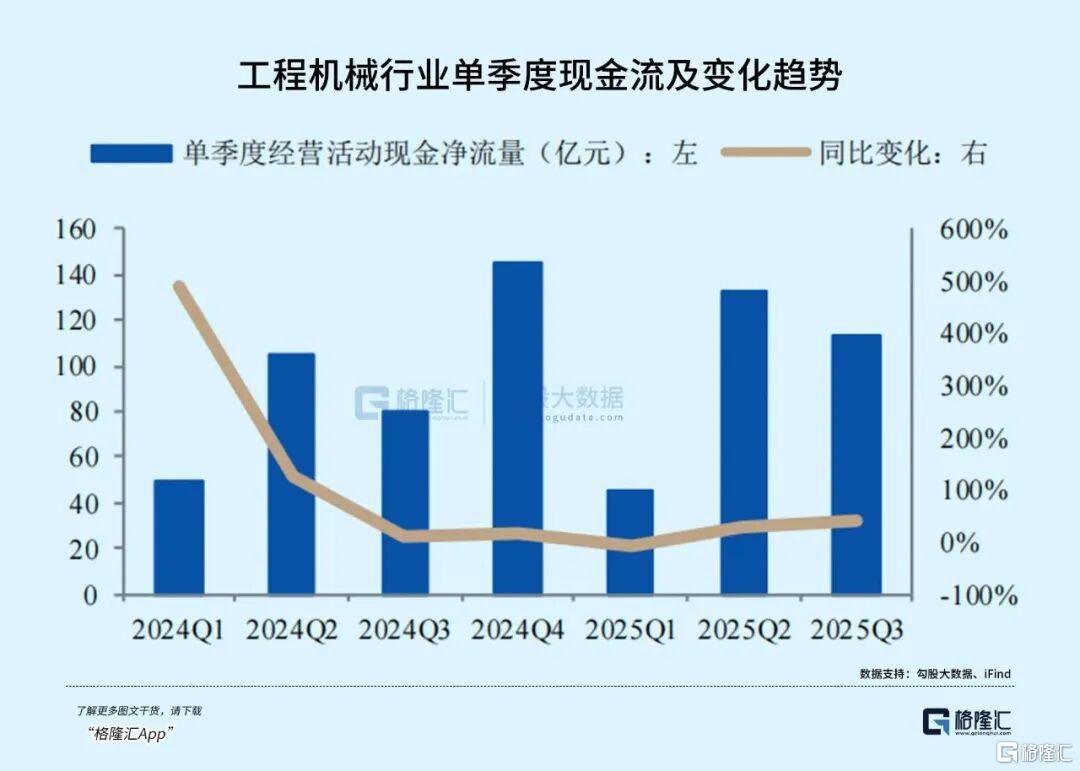 2025年工程机械行业的复苏不仅体现在行情上,更扎根于扎实的基本面。前三季度行业营业总收入达3036.12亿元,同比增长10.84%;归母净利润294.38亿元,同比增幅高达19.72%,盈利能力逐季度提升,销售毛利率从一季度的24.86%攀升至前三季度的25.48%。