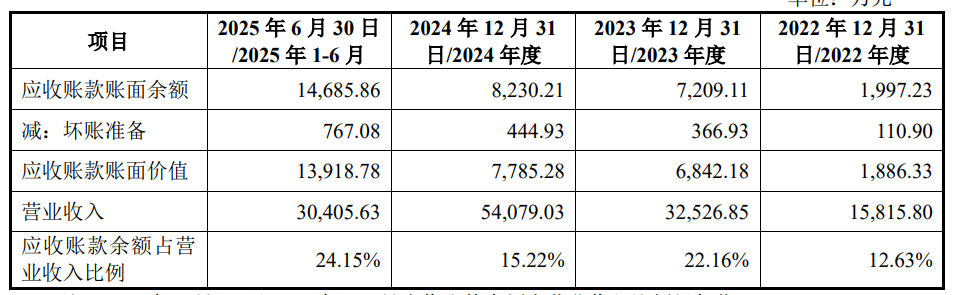 拓荆科技不仅是恒运昌的最大客户,还持有其3.42%的股份,形成了“客户+股东”的双重关系。这种特殊关系可能使恒运昌在定价方面处于劣势,影响定价的公允性。2022年至2025年上半年,恒运昌应收账款账面余额分别为1997.23万元、7209.11万元、8230.21万元、14685.86万元,占各期营业收入比例分别为12.63%、22.16%、15.22%、24.15%。同期,恒运昌信用减值损失金额分别为-59.65万元、-286.64万元、-94.01万元和-332.56万元,这反映出回款压力已初步显现。随着双方合作的深入,拓荆科技可能会利用其股东身份,在价格谈判中争取更有利的条件,进一步压缩恒运昌的利润空间。