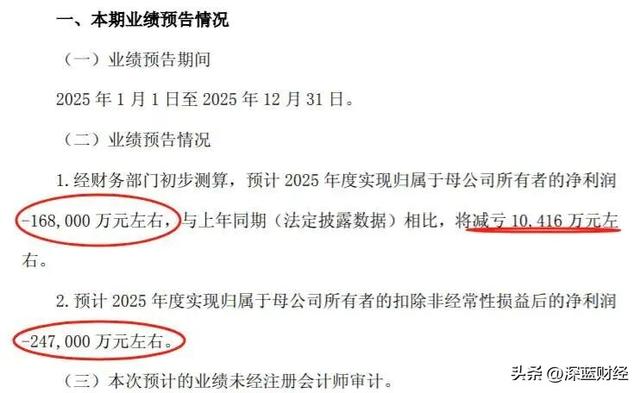 根据江淮汽车1月17日发布的2025年度业绩预告,公司预计当年归母净利润亏损16.8亿元;2024年公司归母净利润为-17.84亿元,这意味着2025年较上年减亏约1亿元。但扣非净利润预计亏损24.7亿元,这表明公司核心主营业务的实际亏损更为严重。