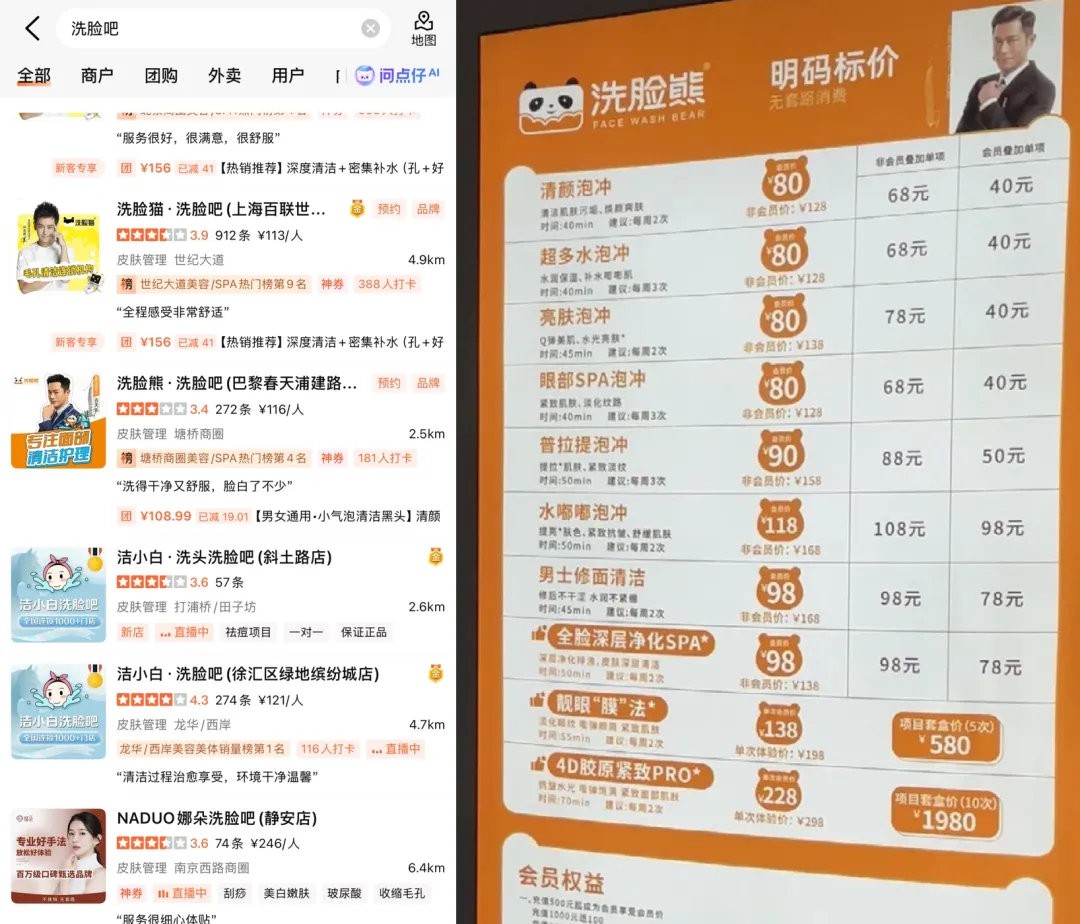 公开资料显示,洗脸熊成立于2022年,在不到两年的时间里拓店超2000家,扩张速度远超行业平均。洗脸熊官方曾提出10000家门店的愿景,并采用明星代言方式扩大影响力——知名演员古天乐是其品牌代言人。此外,其以“只洗脸不推销”、“男生女生都爱的洗脸品牌”为特色,数据显示其男性客户占比接近50%。招商人员直言,拍卖事件事件吸引来的机车党本来就是他们的目标客户。