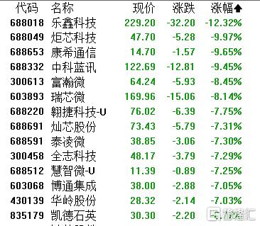 半导体股下跌,乐鑫科技跌超12%,炬芯科技、康希通信、中科蓝讯、富瀚微、瑞芯微等跟跌。