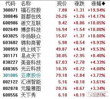 小红书概念股涨幅居前,福石控股20CM涨停,首都在线、浙文互联、博彦科技、华扬联众、锦和商管等跟涨。