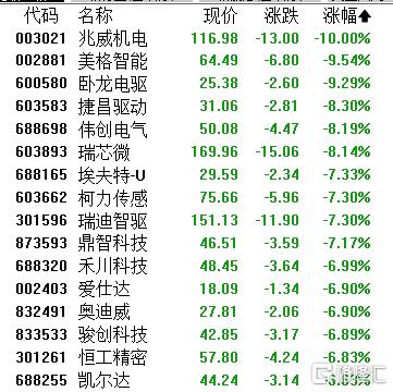 人形机器人概念股走低,兆威机电跌停,美格智能、卧龙电驱、捷昌驱动、伟创电气、瑞芯微等跟跌。